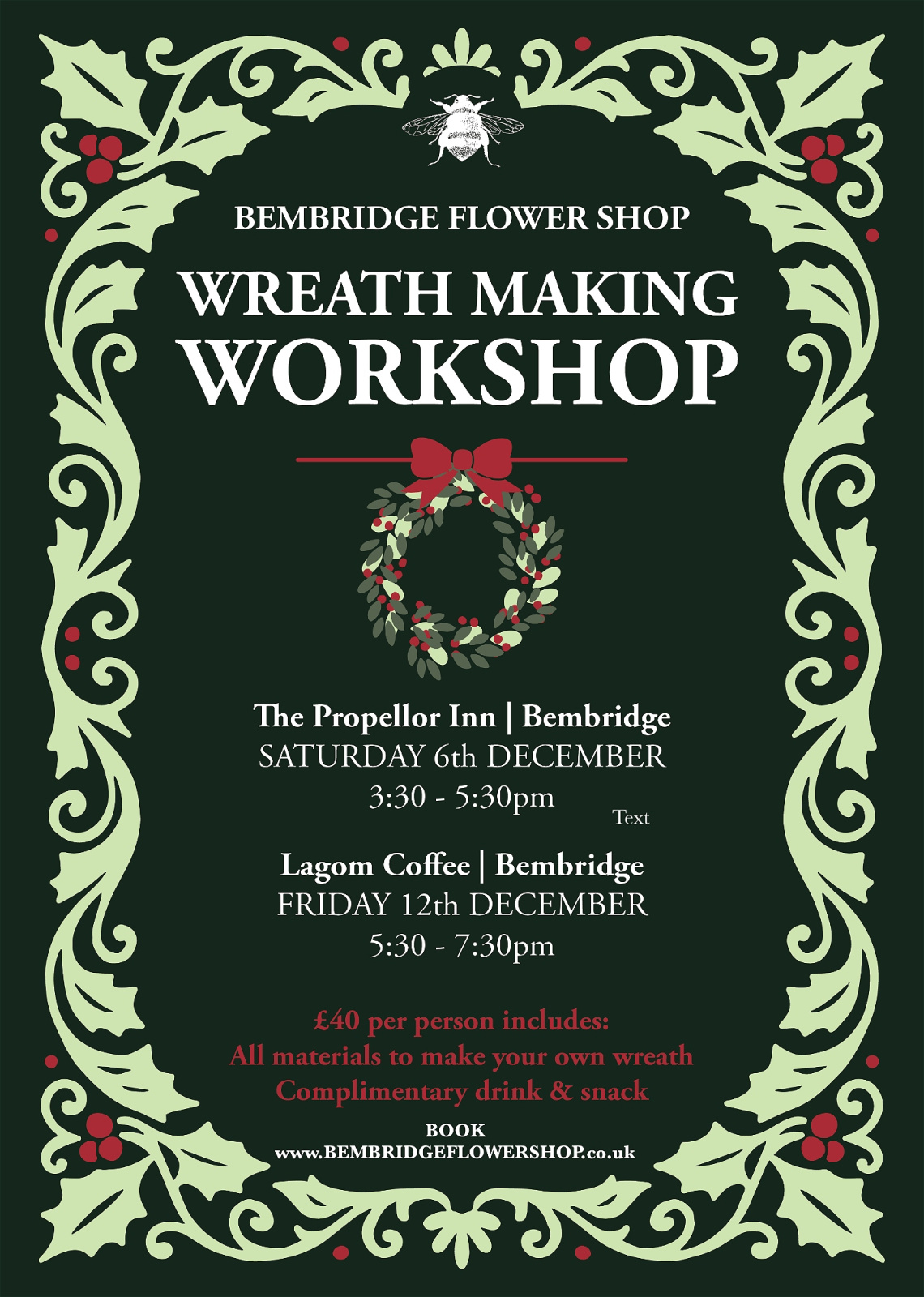 All materials, tools, and festive refreshments are provided — just bring your Christmas cheer! Spaces are limited, so book early to secure your spot.